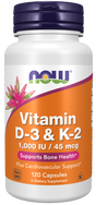 NOW Vitamin D-3 & K-2 1000 IU/45 mcg (120 Capsules)