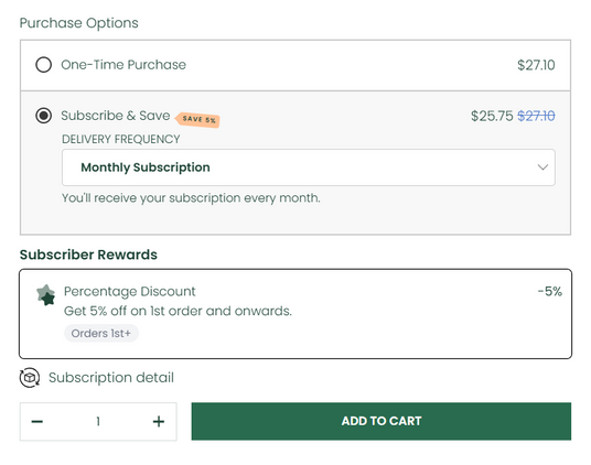 On any product page, select “Subscribe & Save” instead of the one-time purchase option.